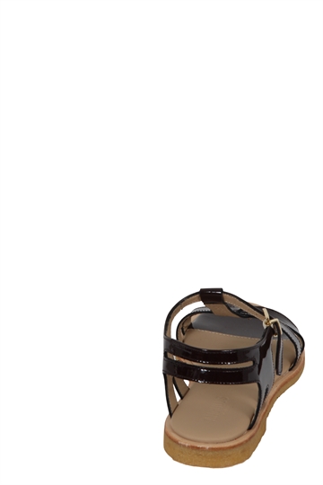 Klassisk remsandal fra Angulus med rågummisål og rund snude i en smuk farve. Sandalen har en justerbar ankelstrop, spændelukning og en polstret læderindersål for ekstra komfort. Den lette og fleksible rågummisål sikrer behagelig gang og holdbarhed, mens det naturlige skind giver et åndbart og stilfuldt design.