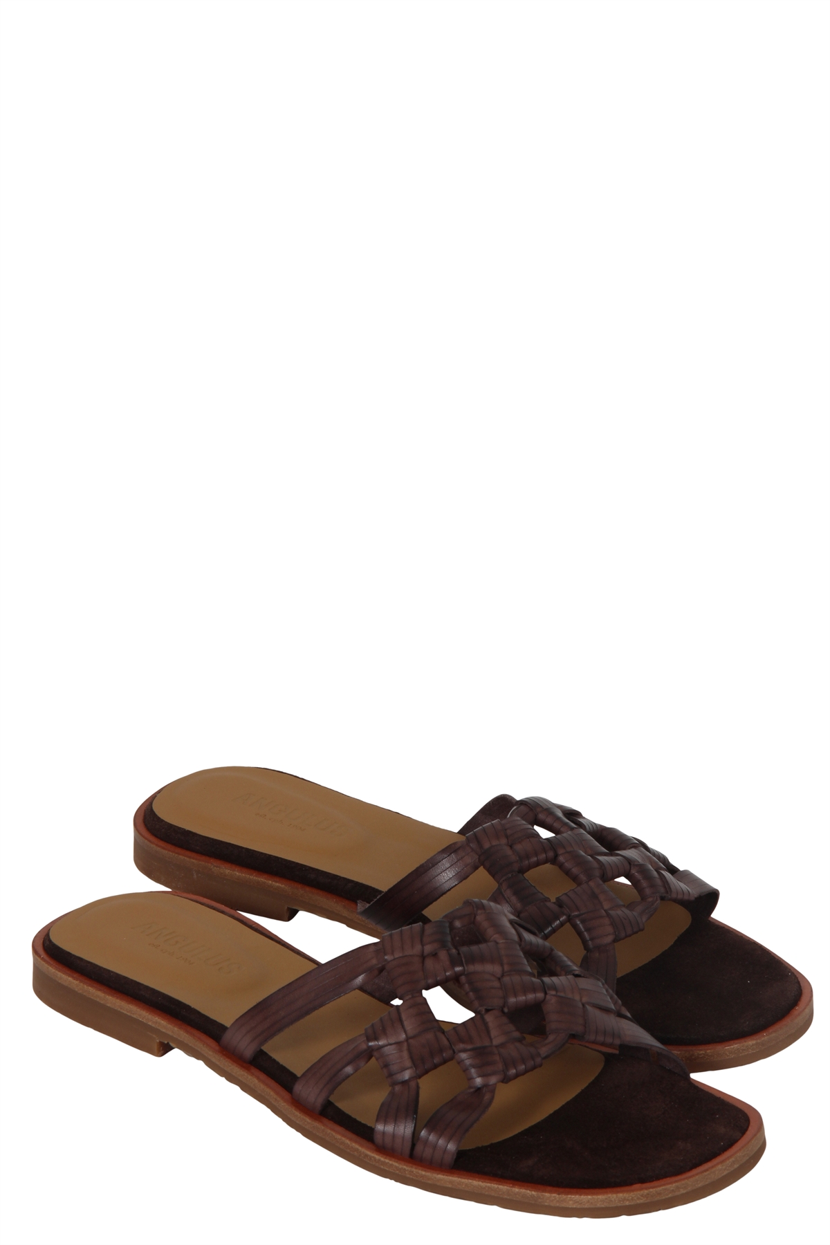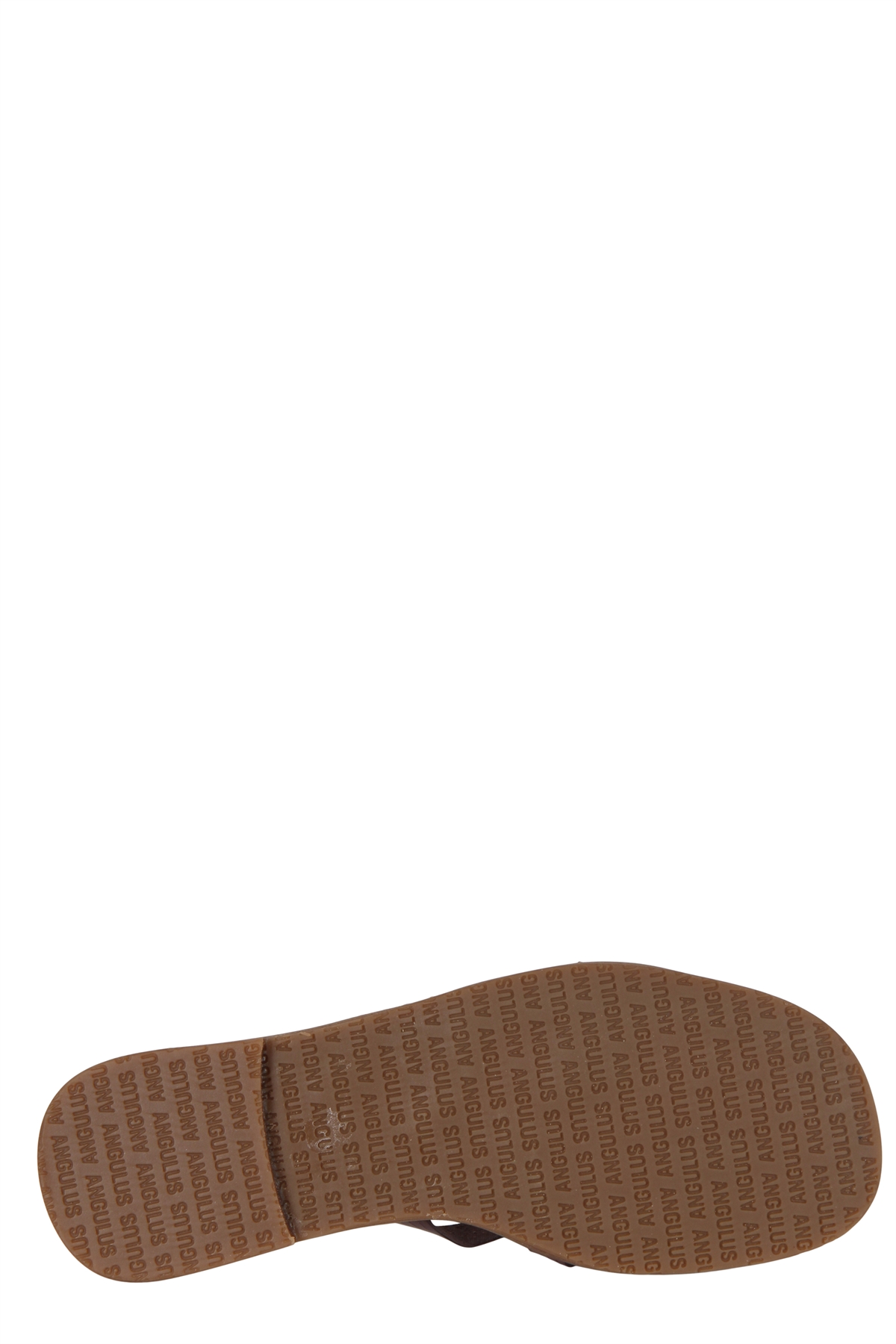Smuk sandal fra Angulus med gummisål. Sandalen har åben hæl og en polstret læderindersål for ekstra komfort. Den lette og fleksible gummisål sikrer behagelig gang og holdbarhed, mens det naturlige skind giver et stilfuldt design.