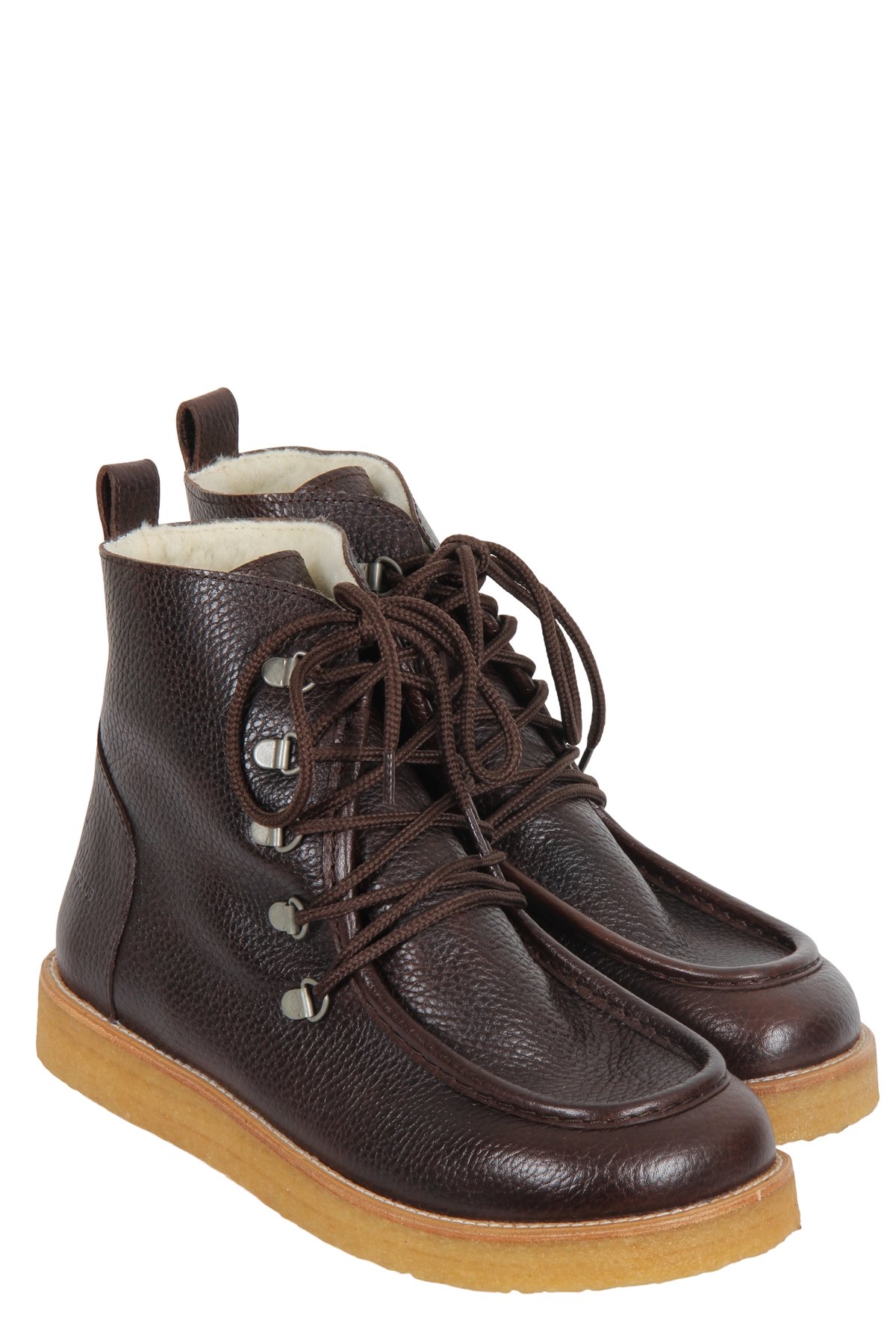 Smuk kort støvle fra Angulus AW 25. Støvlerne bindes med kraftig snøre, har rågummisål og er foret med lækker uld.