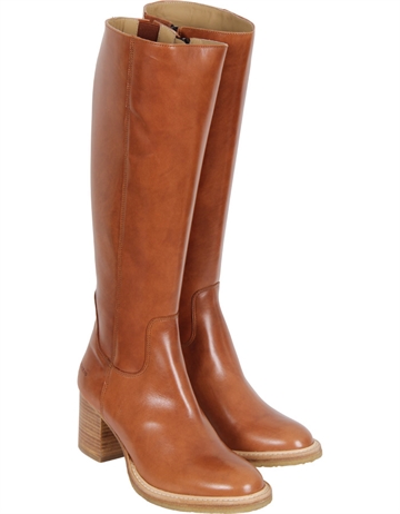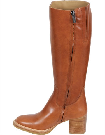 Smuk lang støvle fra Angulus AW 25. Støvlerne har en rund snude og lukkes med indvendig lynlås. Støvlerne har fine lyse syninger, har 5 cm hæl og gummisål. Skaftet har længde til under knæ.