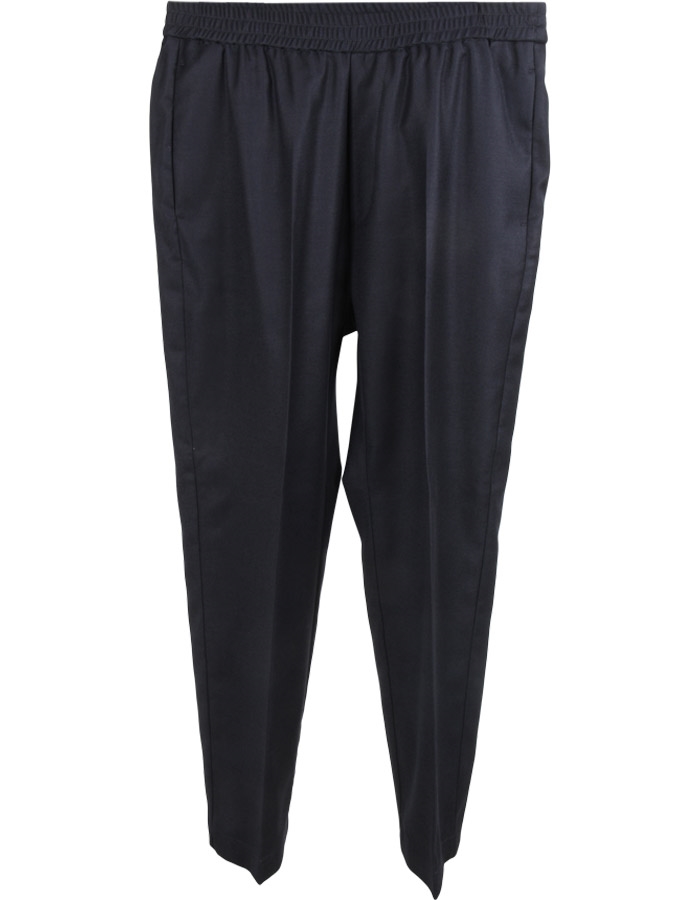 Bukser i glat, let uld fra Barena Venezia AW 2025. Bukserne har pressefold for og bag, elastik i taljen og to baglommer. De har almindelig taljehøjde og en afslappet let stumpende pasform.