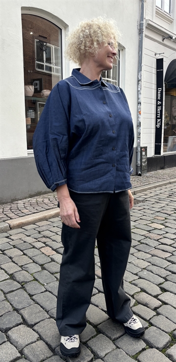 Afslappet, minimalistiske bukser fra Barena Venezia AW 2025. Bukserne har lange, brede ben, to baglommer og lommer i siden. De har elastik i taljen bagtil for komfort og funktionalitet og almindelig talje.