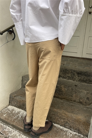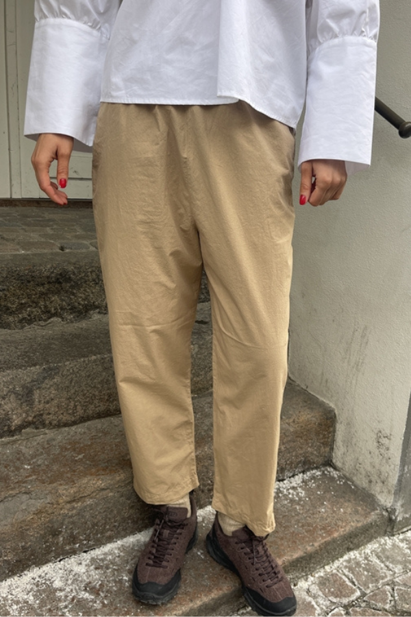 De populære og alsidige Joie Tendon bukser fra Barena Venezia. Bukserne har en afslappet pasform og elastik i taljen. De har to baglommer og lommer i siden. Kvaliteten er en strækbar, letvægt poplin med let krøllet/crep tekstur.