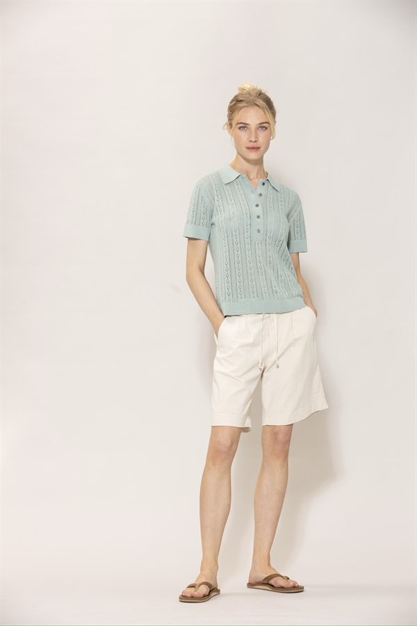 Lina Polo Aqua fra Blue Sportswear er en let, sommerlig polo-top i naturligt materiale med et rent, klassisk design – sporty, men stadig feminin og nem at style.