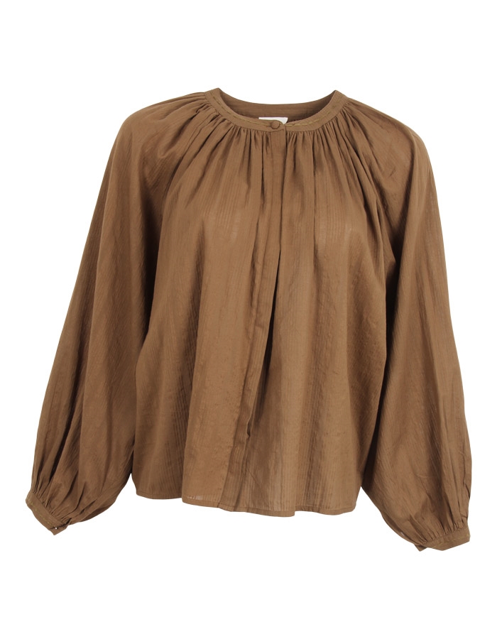 Smuk skjorte fra franske Diega AW 2025. Skjorten lukkes med skjulte knapper fortil, har rund krave og er i et løst og afslappet design.