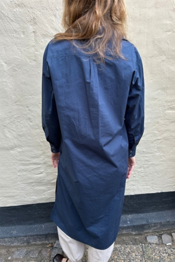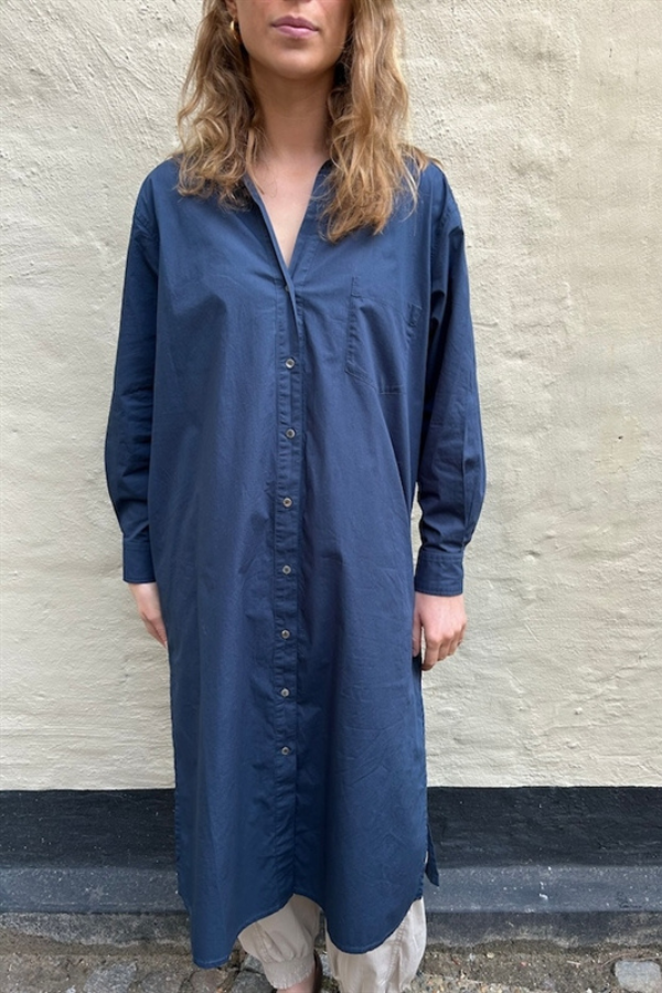 Elegant kjole fra Diega SS 2026. Kjolen har lille krave og lukkes med knapper fortil. Kjolen har længde til under knæ og er i et løst og afslappet design.