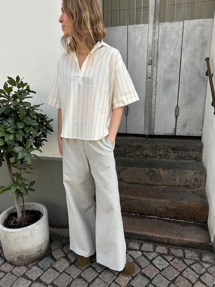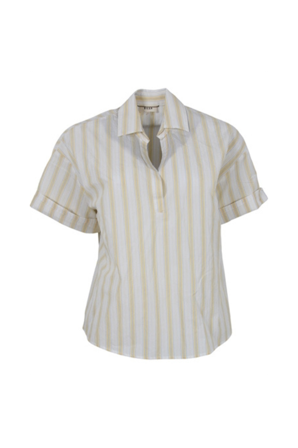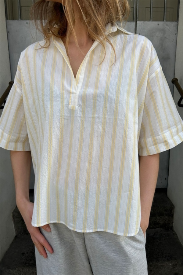 Smuk Top fra franske Diega SS 2026. Skjorten har lille krave, striber i designet og super let og sommerligt design.