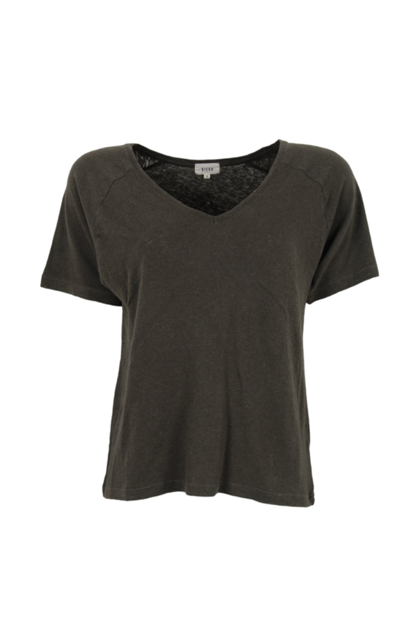 Smart T-shirt fra franske Diega SS 2026. Blusen har bred V-udskæring og er i et sommerligt snit..