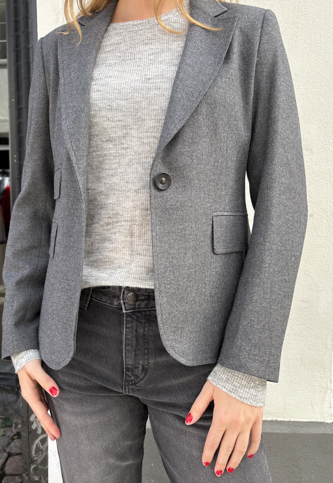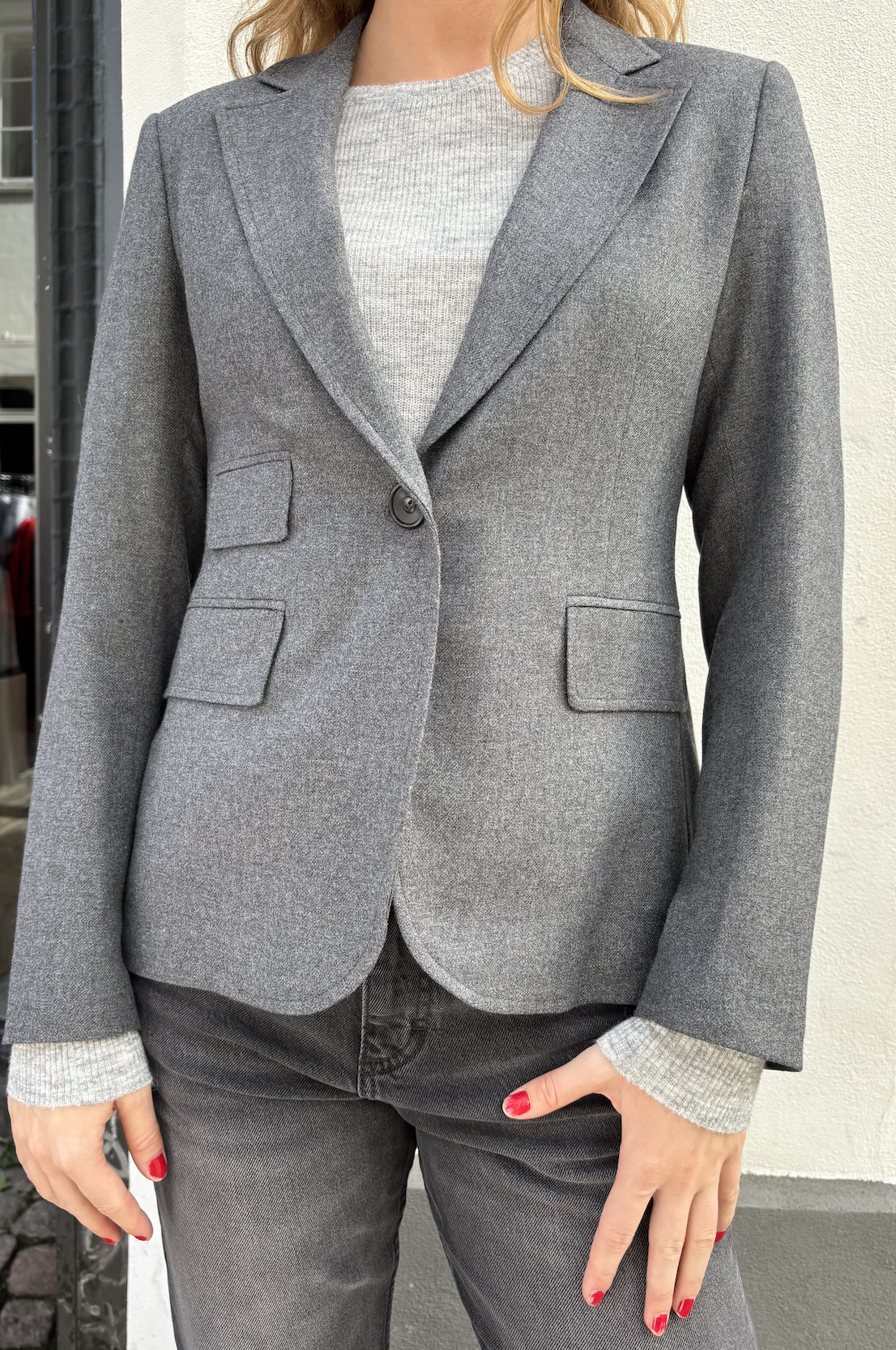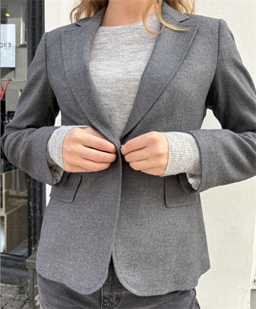 Elegant Blazer jakke fra Diega AW 2025. Jakken har stor revers, har 2 forlommer og lukkes med enkelt knap. Jakken har en smuk silhuet med talje.