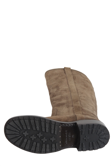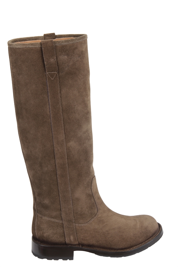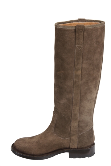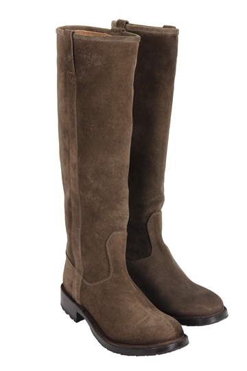 Smuk langskaftet støvle i lækkert skind fra Elia Maurizi AW 25. Støvlen er randsyet har sål i kraftig gummi og to hanke i skaftet der gør den nem at træde i.