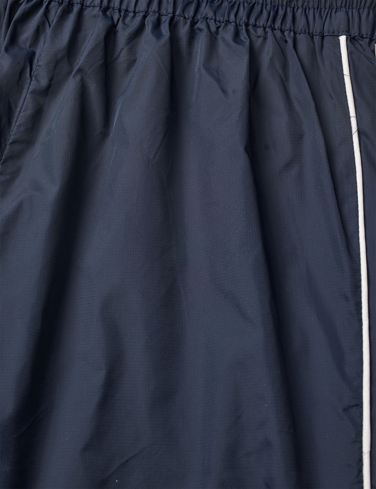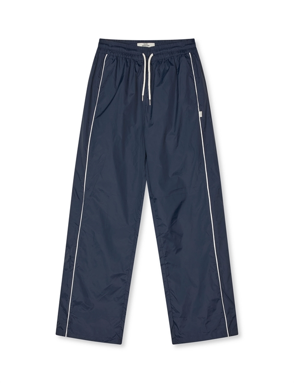 Smarte trackpants fra Mads Nørgaard SS 2026. Buksen har justerbar snøre, skrålommer og kontraster langs benene.
