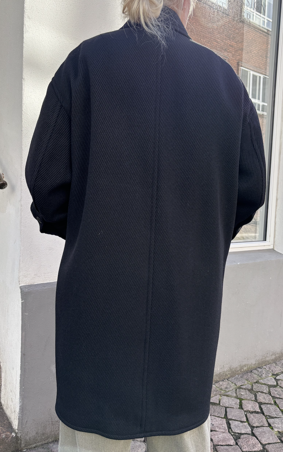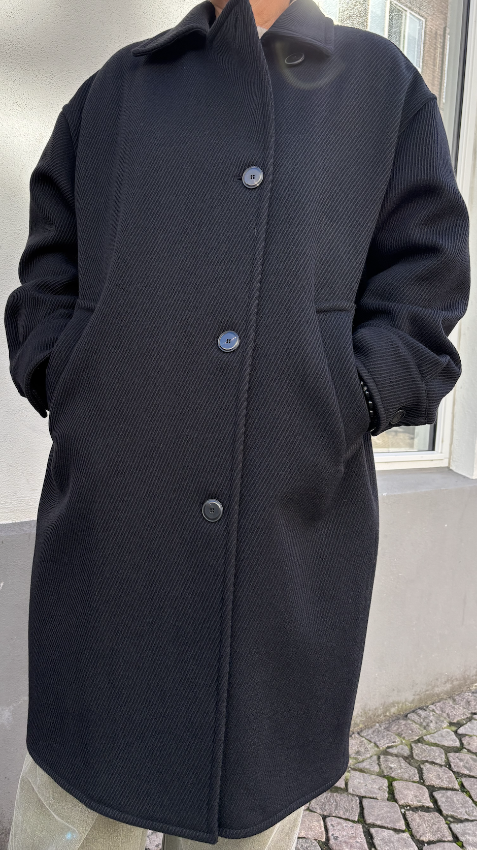 Klassisk smuk uldfrakke fra Pomandère AW 2025. Frakken lukkes med knapper fortil. Frakken har to forlommer og længde til knæ. Super smuk frakke i lækker uldkvalitet.