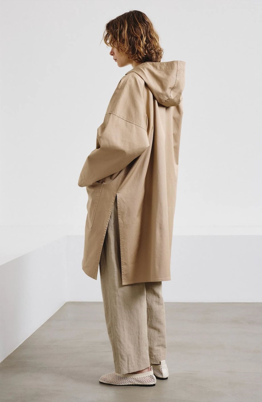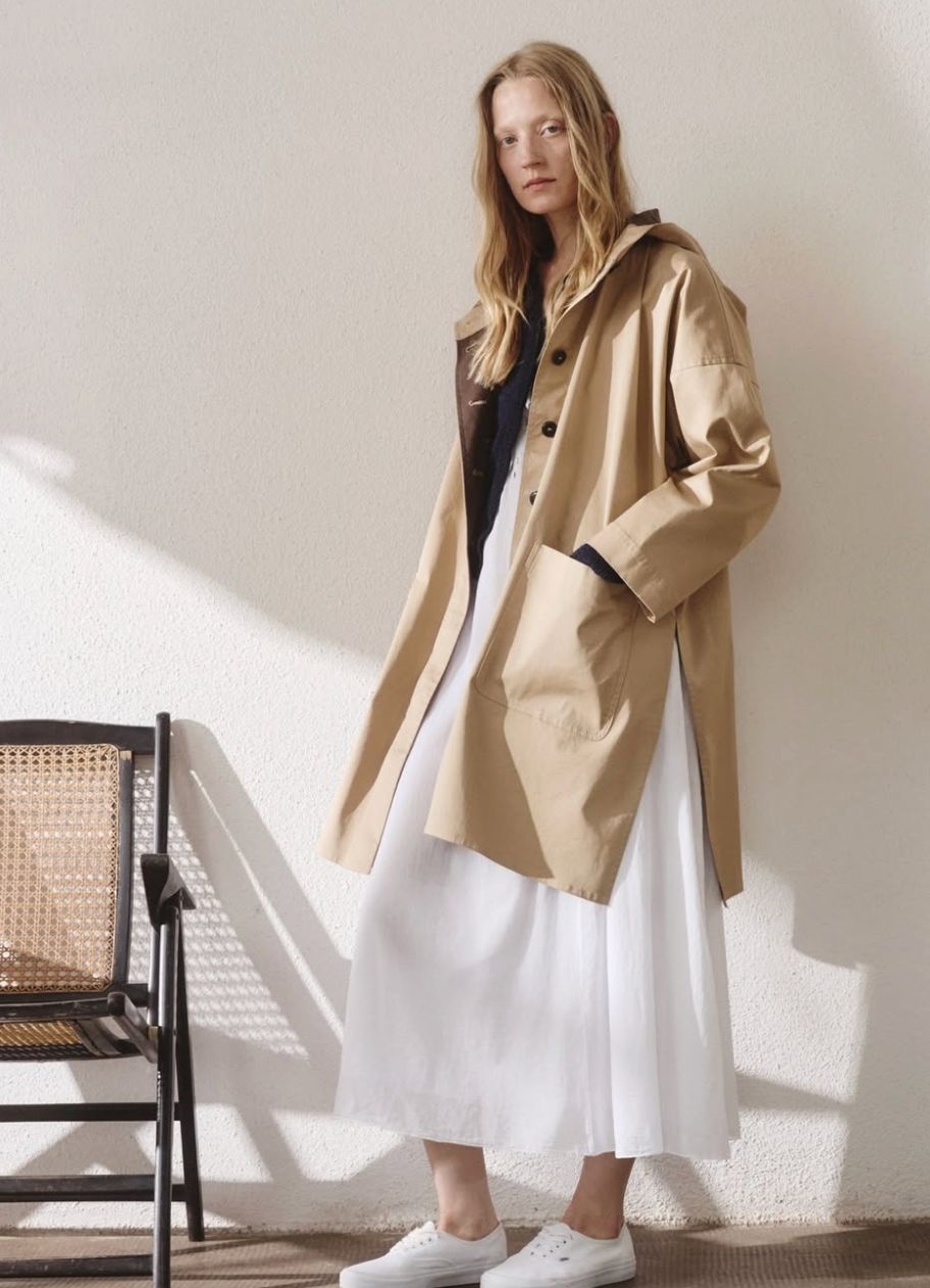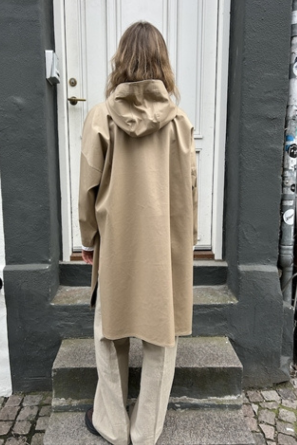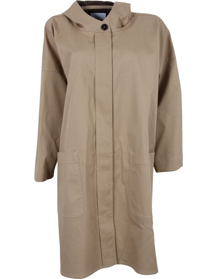 Klassisk smuk lang frakke fra Pomandère SS 2026. Frakken har hætte, er i en lækker bomuld og lukkes med skjulte knapper fortil. Frakken har to forlommer og længde til under knæ. Super smuk frakke i lækkert løst design.