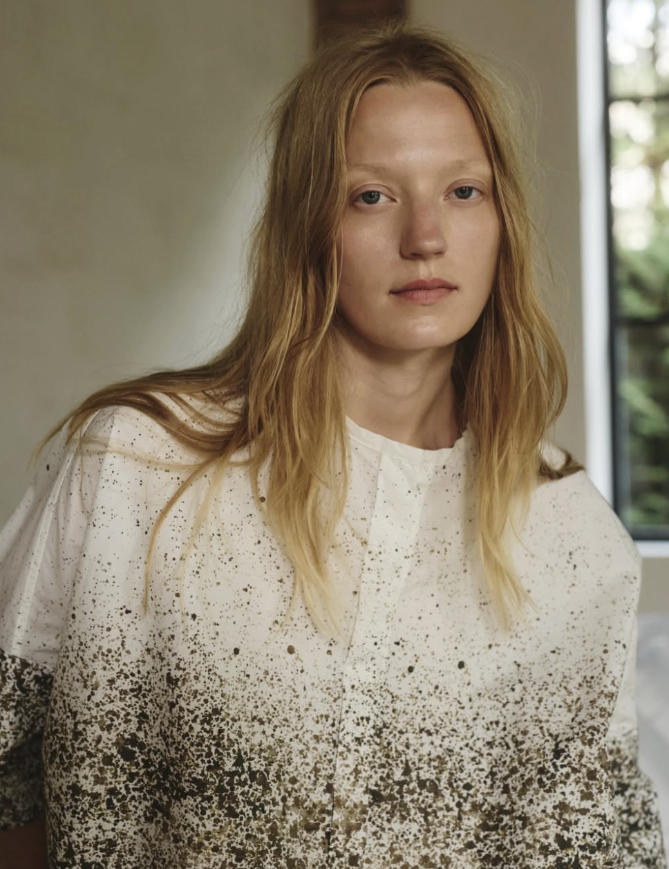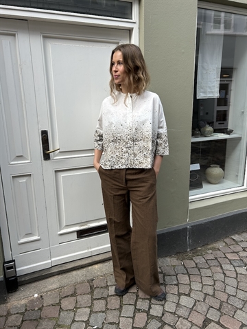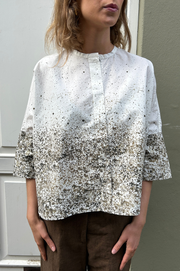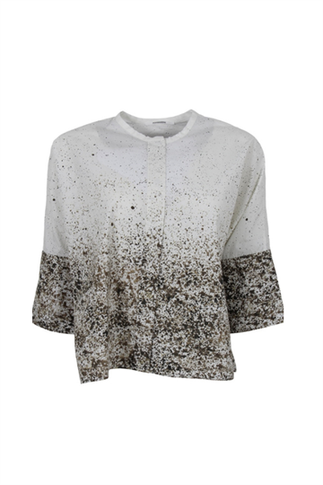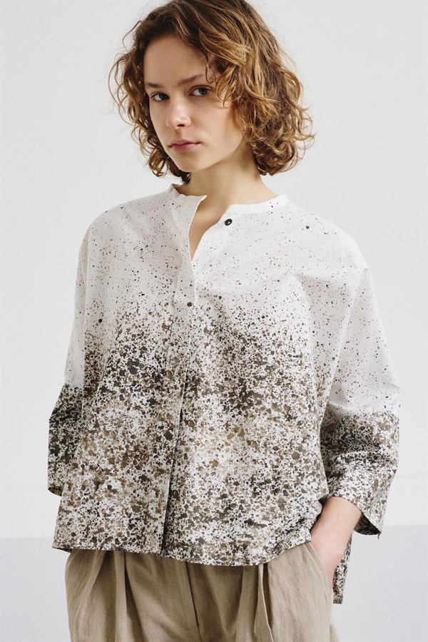 Elegant skjorte fra Pomandère SS 2026 . Skjorten lukkes med skjulte knapper langs brystet og en har rund krave, der tilføjer et sofistikeret touch. Skjorten er løs i designet og har elegante farvenuancer i stoffet. Perfekt til et stilfuldt og luksuriøst look.
