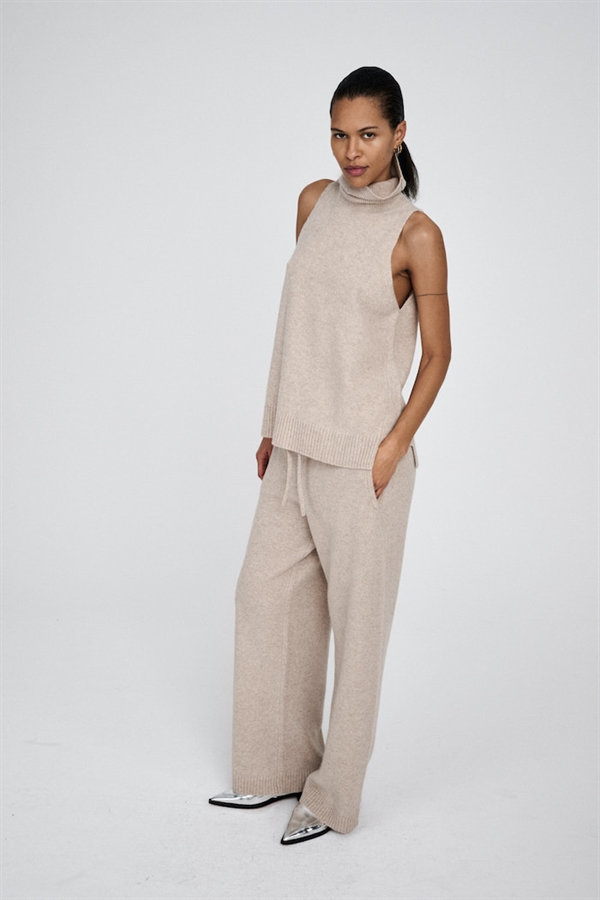Cool buks i løs pasform fra Rabens Saloner. Buksen er i ren uld og har lange lige ben. Denne buks i et super cosy design bindes med snøre ved livet.