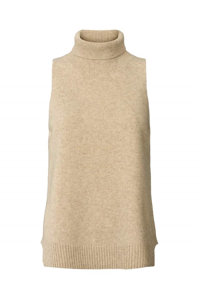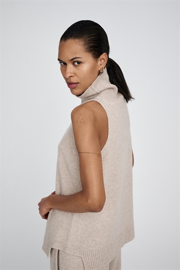 Smuk funnel top fra Rabens Saloner AW25. Toppen er med høj hals og er i det blødeste og varmeste uld. Styles med tilhørende bukser.