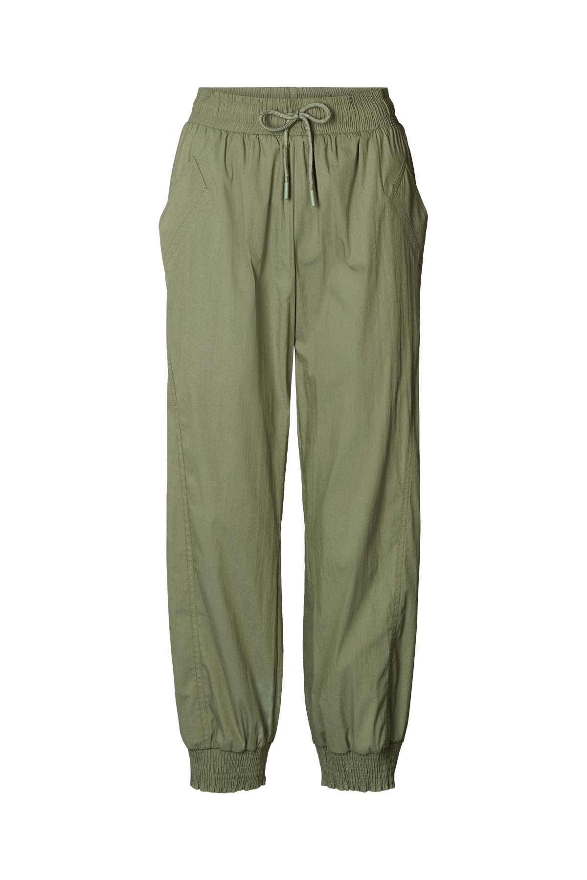 Afslappet og cool bukser fra Rabens Saloner. Bukserne har elastik kant forneden og snørre i livet..