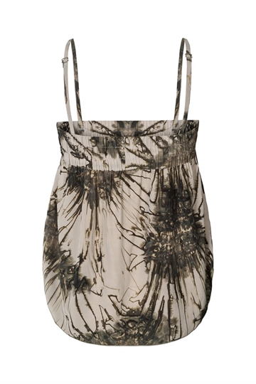 Denne smukke Tie dye top fra Rabens Saloner kombinerer feminin elegance med et afslappet udtryk. Toppen har Elastik foroven samt aftagelige stropper. Toppen kan styles til hverdag og mere festlige lejligheder.