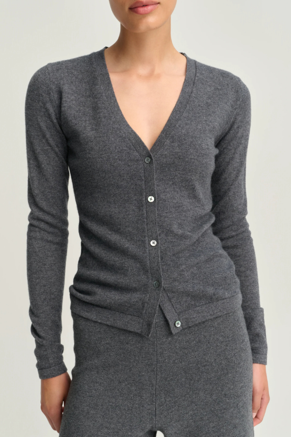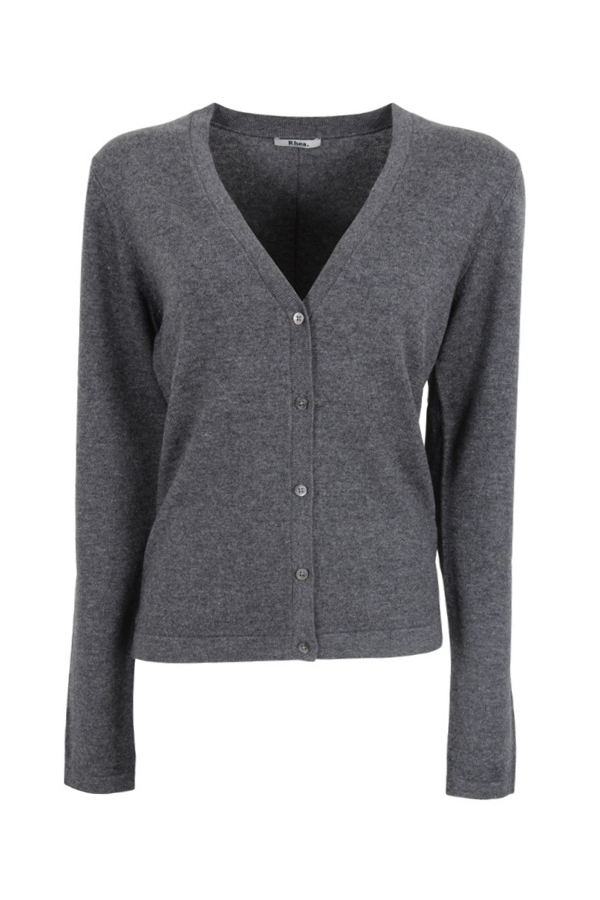 Smuk Cardigan fra Rhea SS 2026. Cardiganen er i en lækker Merino uld blanding, har lange ærmer og V-udskæring med knaplukningen.