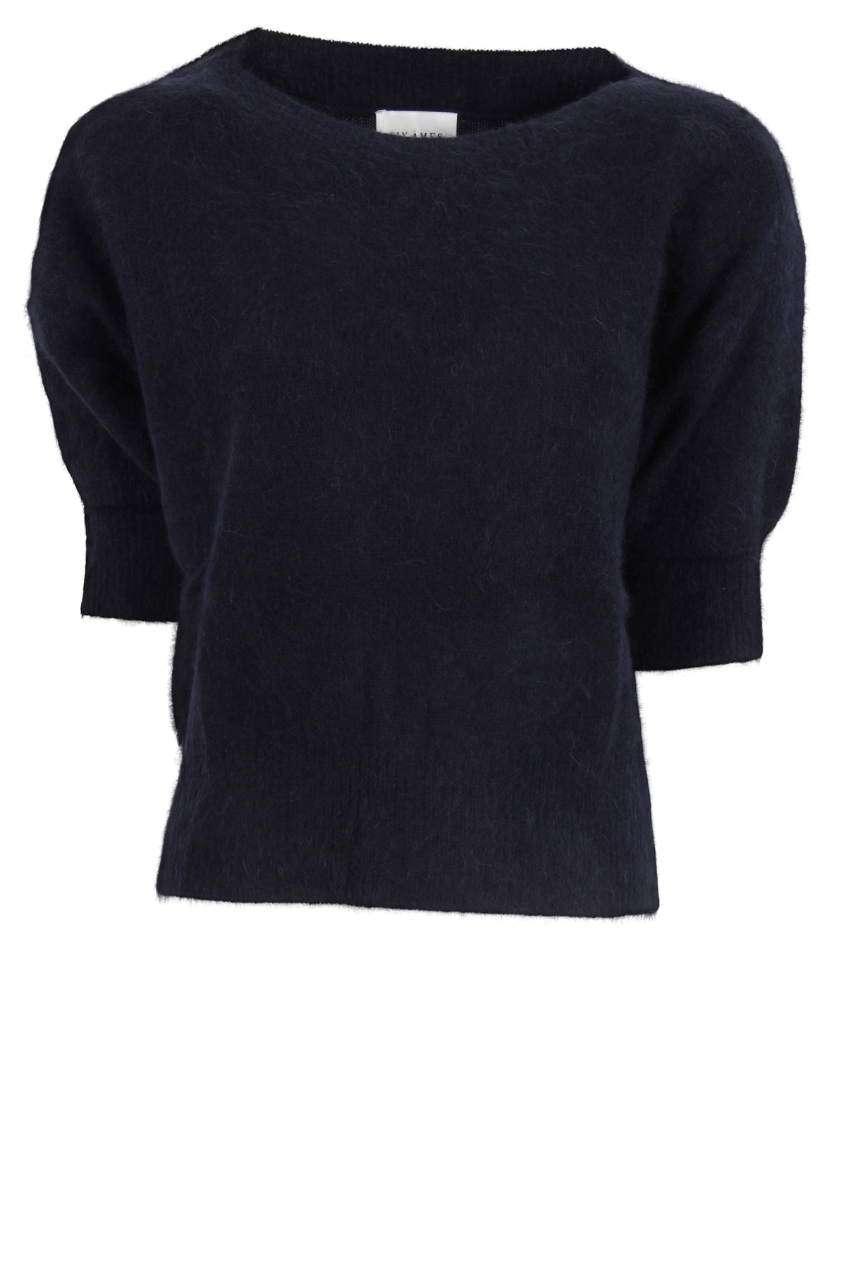 Moi sweater fra Six Ames. Materialet er det velkendte, ultra bløde, lette og behagelige raccoon strik. Sweateren har korte ærmer og elegant bådudskæring. Afslappet pasform.