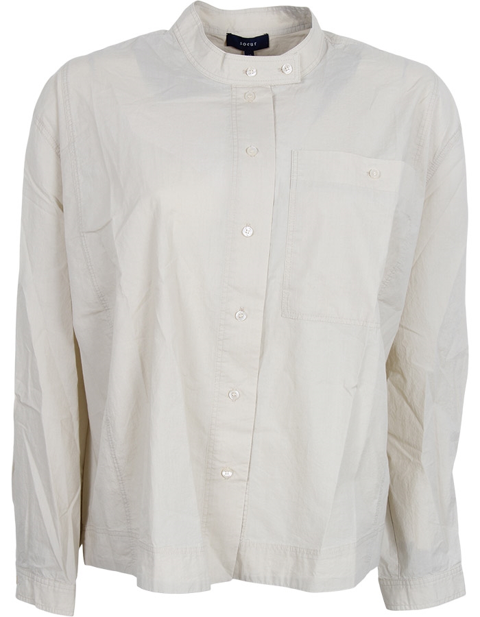 Denne beige skjorte fra Soeur har en løs pasform og lange ærmer. Den klassiske skjortekrave og knaplukning giver et tidløst look og det bløde bomuldsstof tilføjer både stil og komfort.