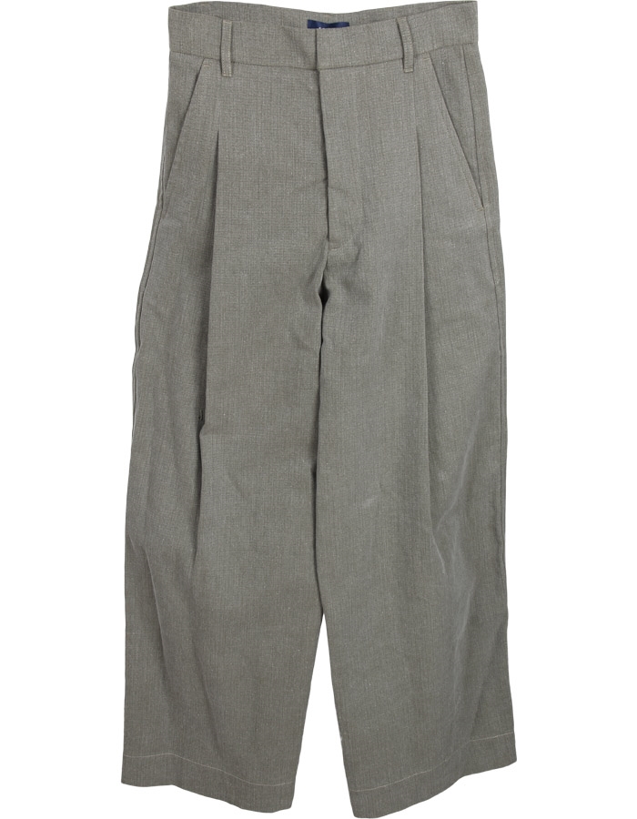 Bukser i kaki farve fra Soeur AW25. Bukserne har løs pasform og lukkes med knap og lynlås. Bukserne har læg, vidde i benene og er i et løst og afslappet design.