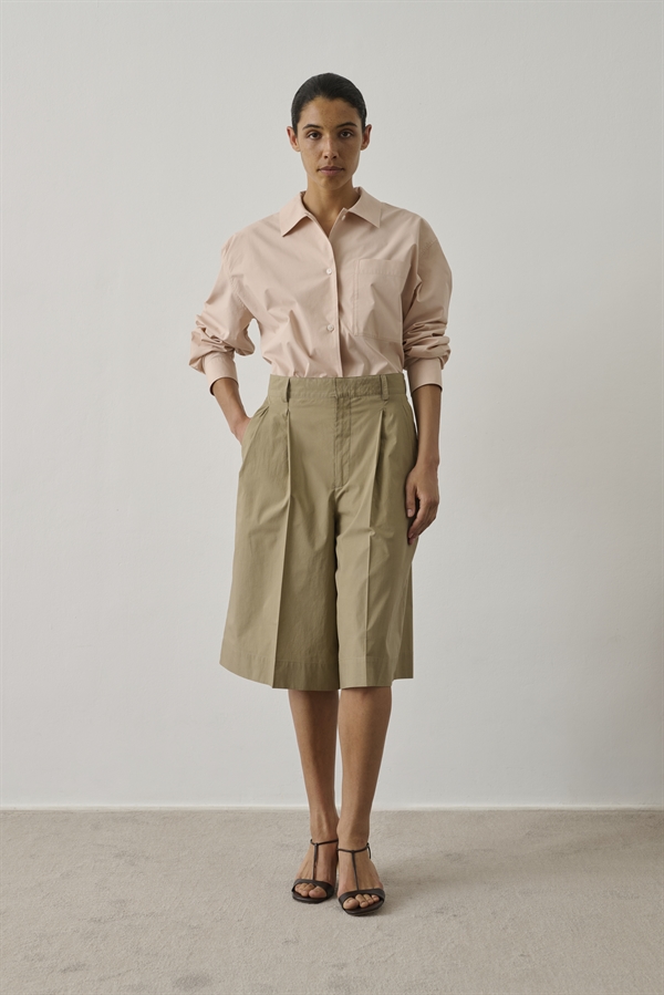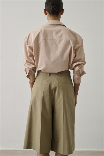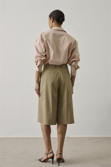 Imogen shorts er komfortabel og elegant shorts. Den har en løs pasform og lukkes med knap og lynlås. Shortsene har læg, vidde i benene og er knælange. designet til et afslappet og elegant hverdagslook.