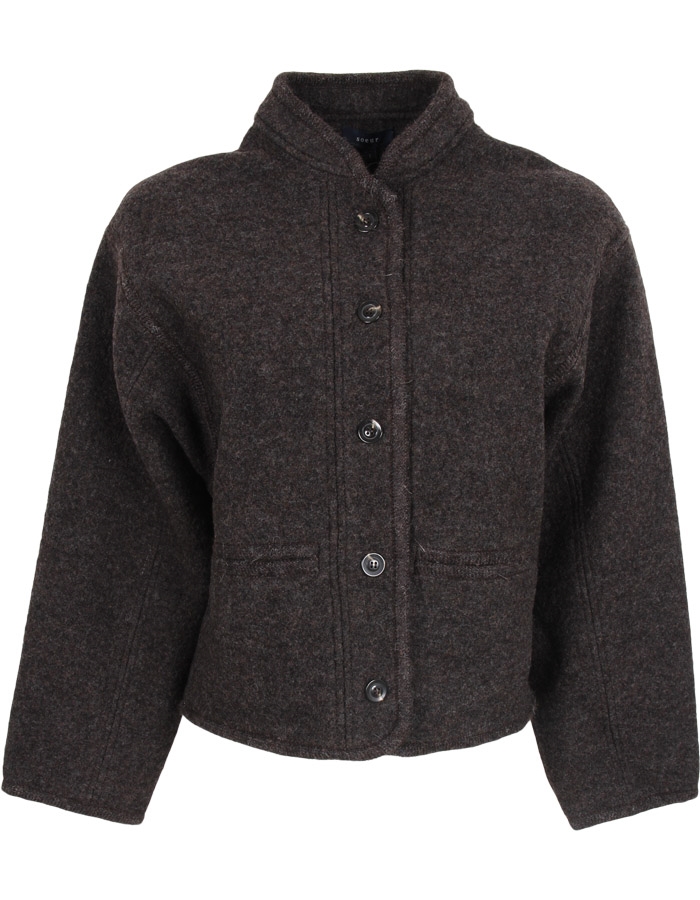 Kort jakke fra Soeur AW25 med en løs pasform. Den har lange ærmer, knaplukning foran samt lommer. Jakken er med høj hals og har løse ærmer.