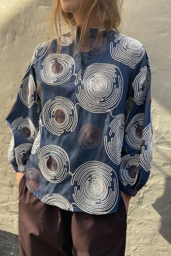 Soil Aarhus Soil Aarhus Bloomie Circle Bluse, Blue