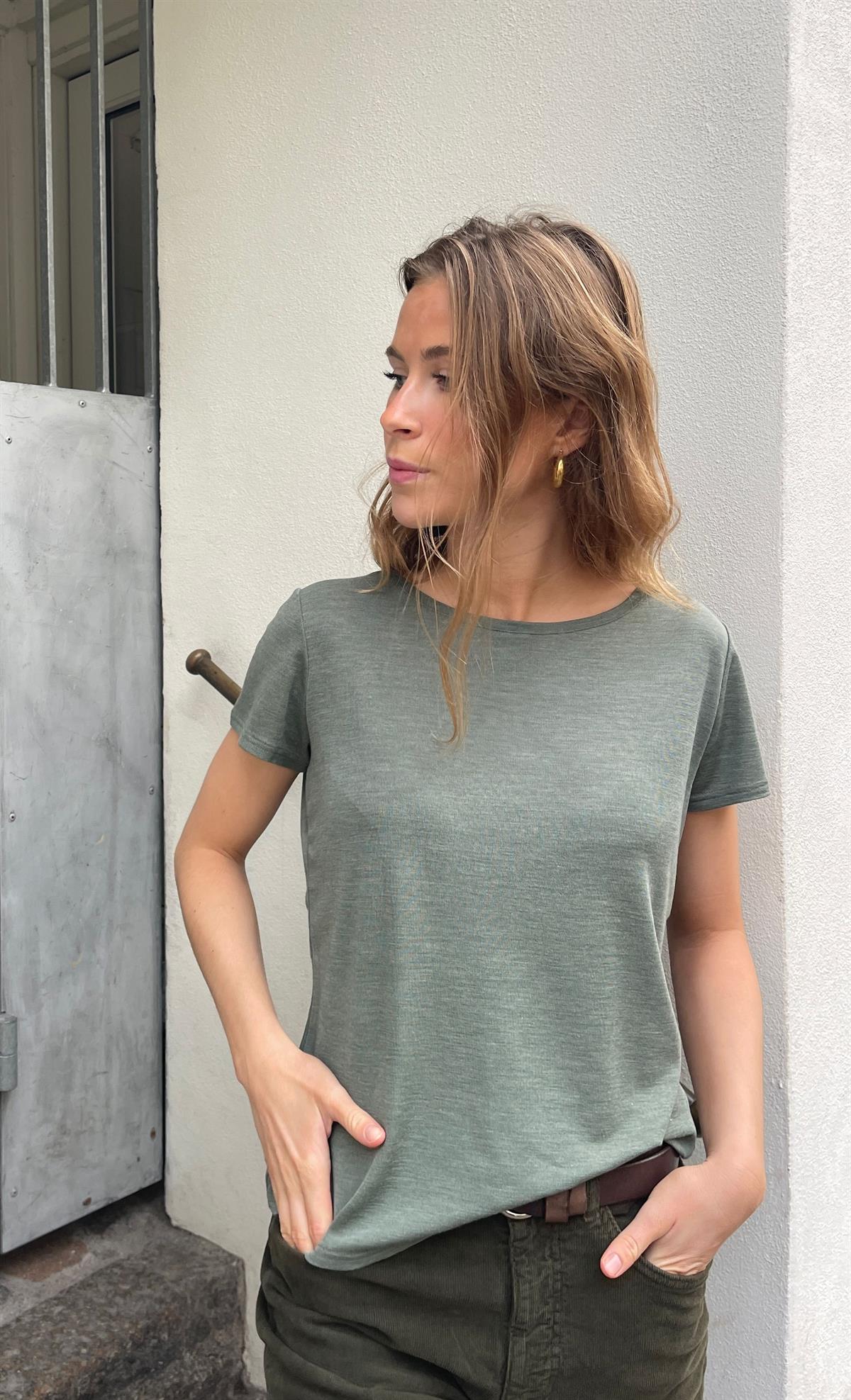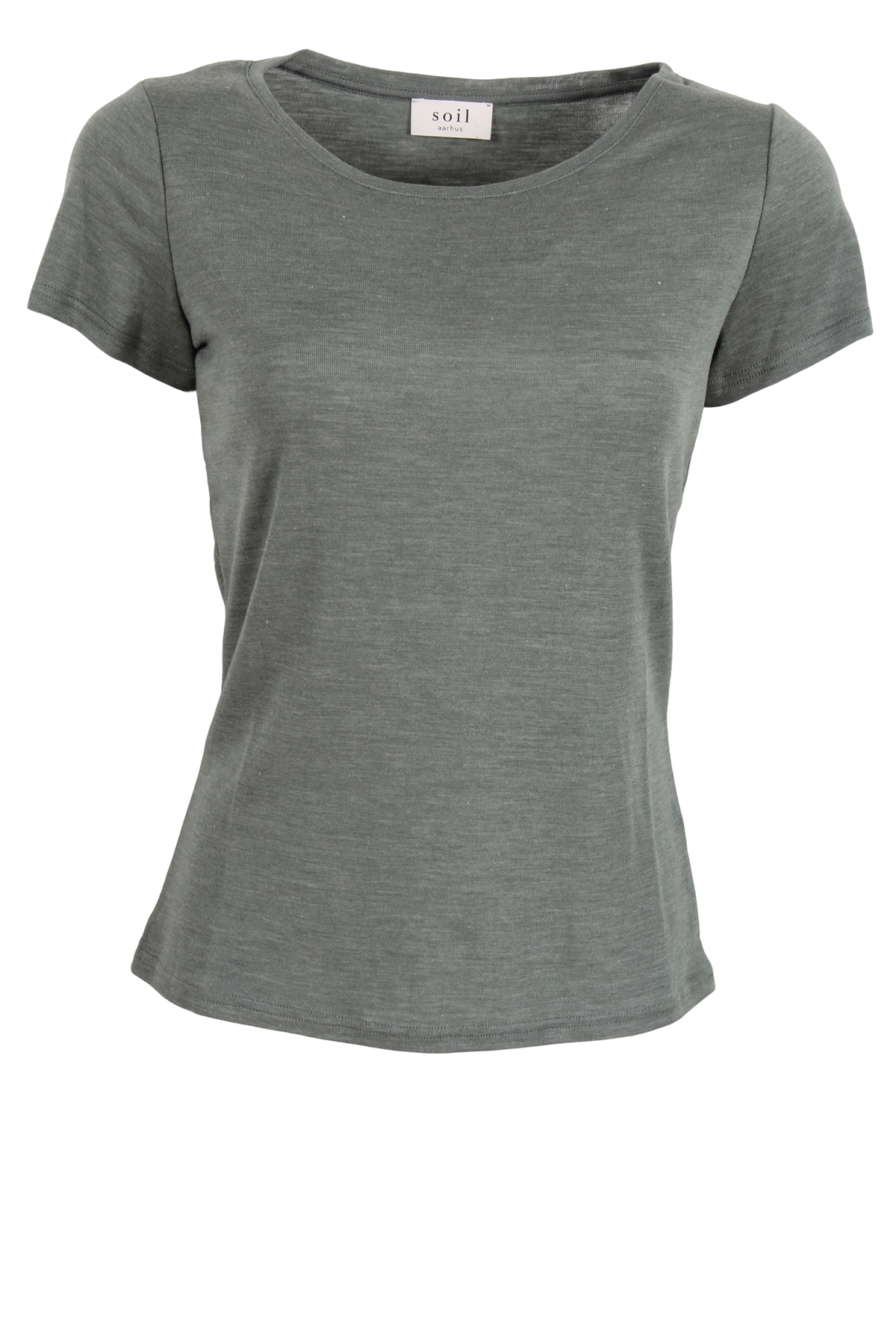 Smuk basis T-shirt fra soil aarhus med. Blusen har rund hals, korte ærmer og er i helt enkelt design.