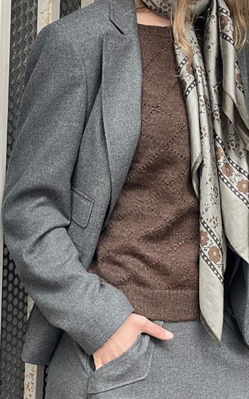 Vask: Hæng til udluftning for at rense det. Hvis vask er nødvendigt, håndvaskes det forsigtigt i koldt eller lunkent vand med et mildt uld- eller silkevaskemiddel. Undgå at vride, og lad tøjet tørre fladt på et håndklæde for at bevare formen
