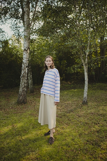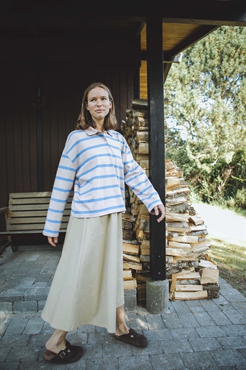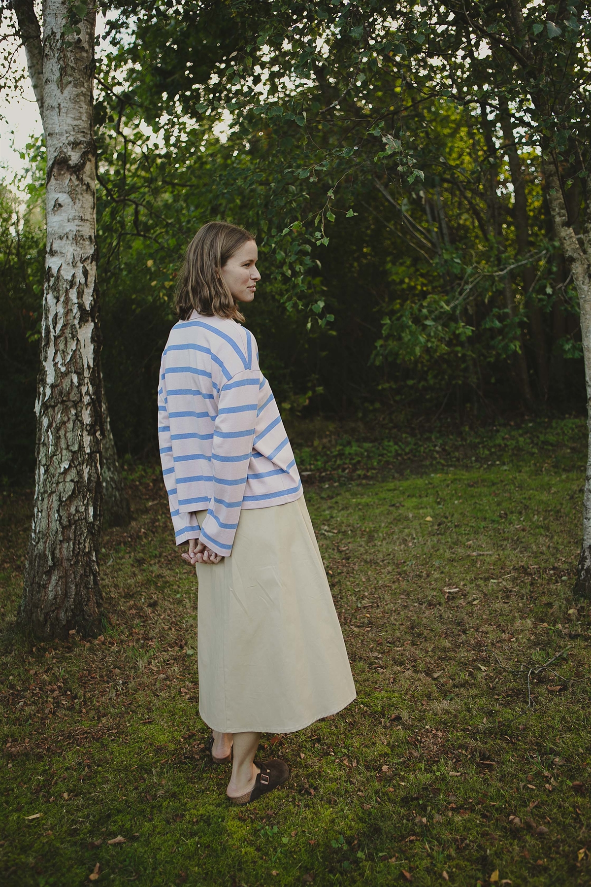 Agnes nederdel fra Studio Feder. Nederdelen har et enkelt og tidsløst design. En løs silhuet, elastikbånd i taljen og to sidelommer fortil.