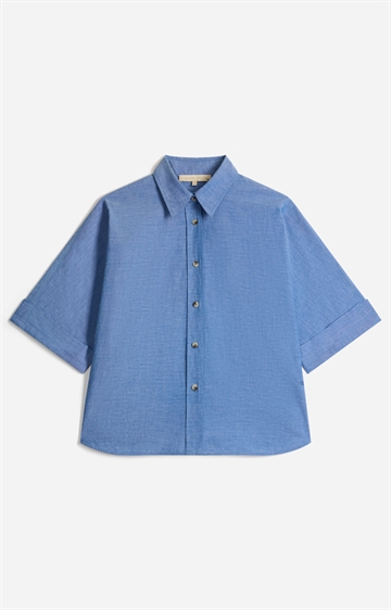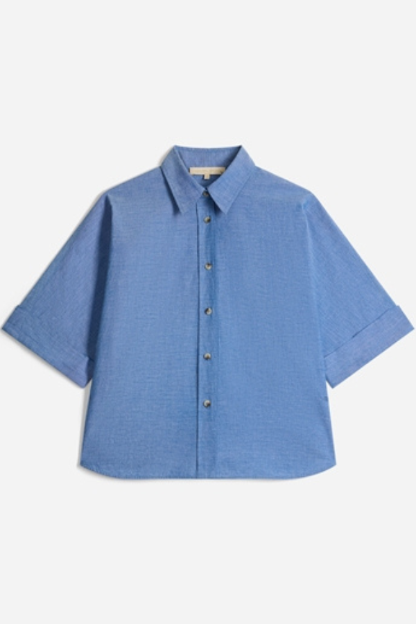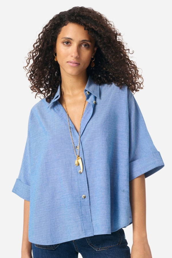 Bobby Chambray er en tidløs og afslappet skjorte fra Vanessa Bruno. Skjorten har korte ærmer, er kort og bred. Perfekt til jeans eller mere dressed up bukser.