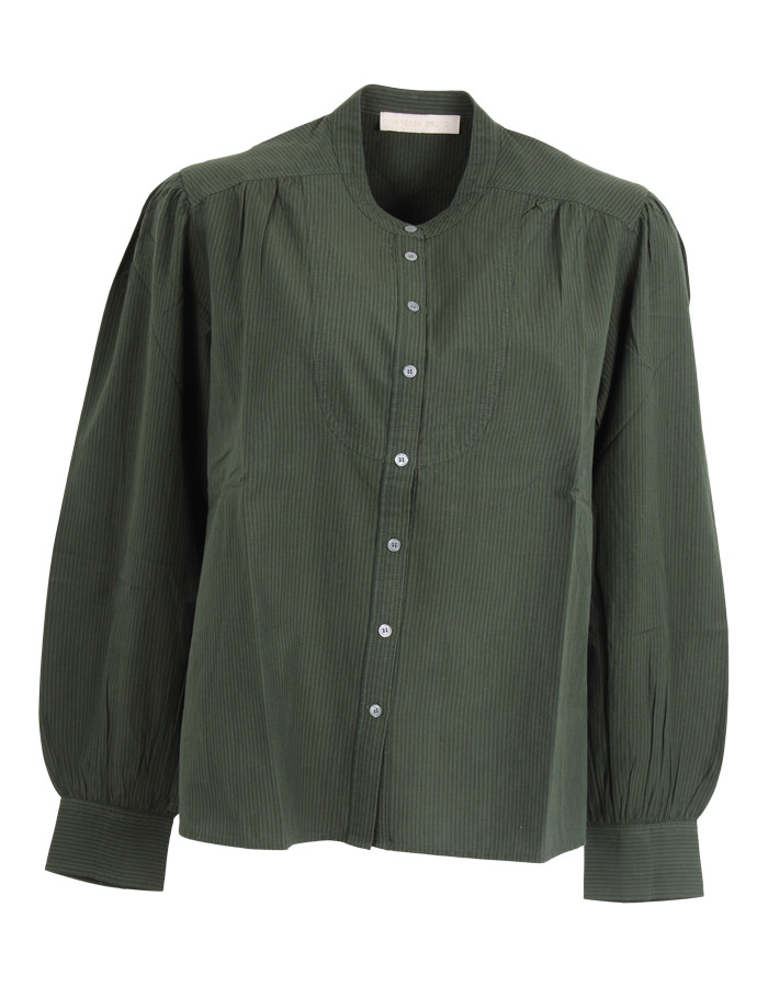 Elegant vintage look skjortebluse fra Vanessa Bruno AW 25. Blusen er i det fineste bomuld, lukkes med perlemors knapper fortil og har lange ærmer med manchet. Skjorten har fine striber i stoffet.