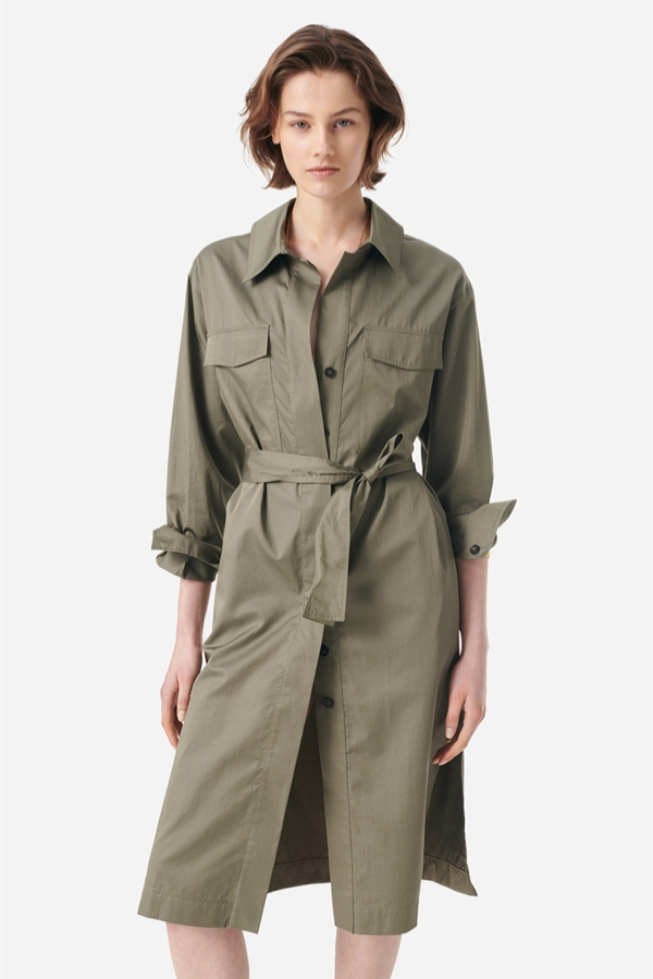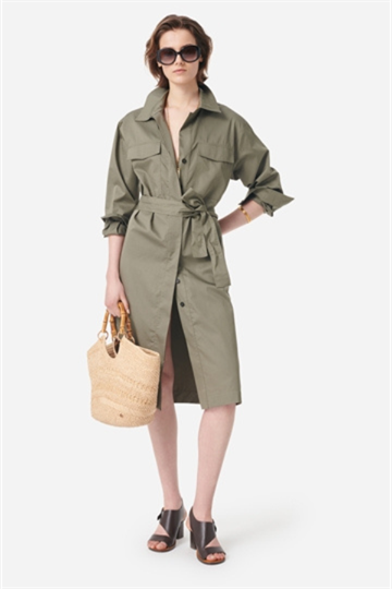 Gamba kaki kjolen fra Vanessa Bruno er en klassisk, stilren og funktionel skjortekjole, der gør den perfekt både til herdag og fest.