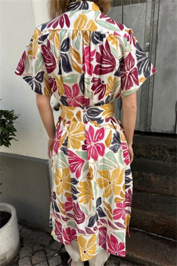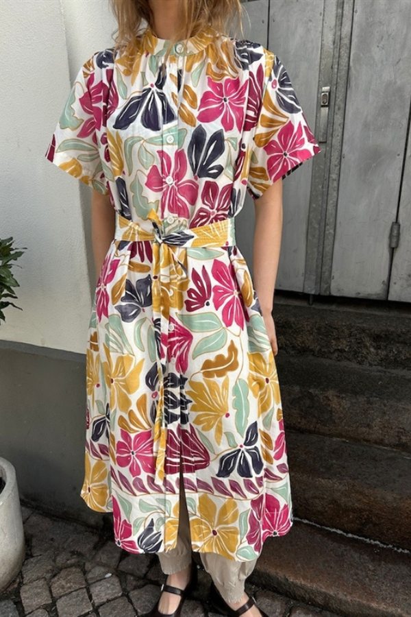 Vanessa Bruno Ghala Creme Multi-colour dress er en feminin og elegant kjole med et let og sommerligt udtryk. Kjolen er boheme-inspireret, afslappet luksus med en parisisk elegance.