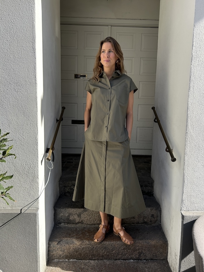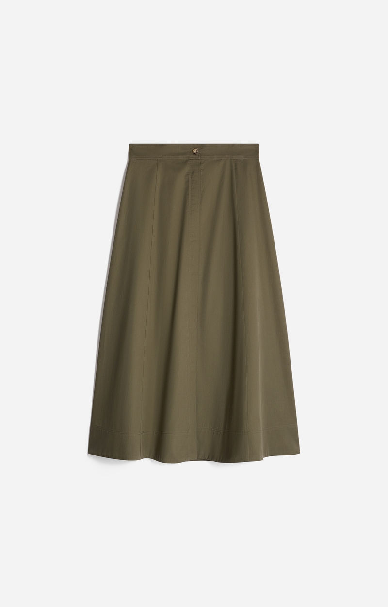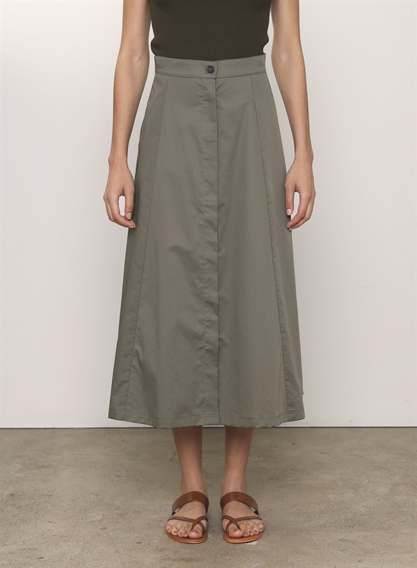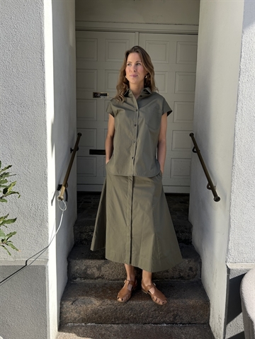 Giada kaki nederdel fra Vanessa Bruno er en klassisk, stilren og funktionel nederdel. Den er A formet, midi længde, der gør den perfekt både til herdag og fest.