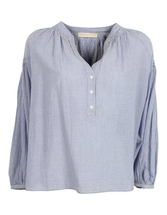 Nipoa er en signatur style fra Vanessa Bruno AW 2025. Blusen har v-udskæring og knaplukning. Den har voluminøse ærmer, lave skuldersømme og rynk på ærmer og halsudskæring. Afslappet, let pasform.