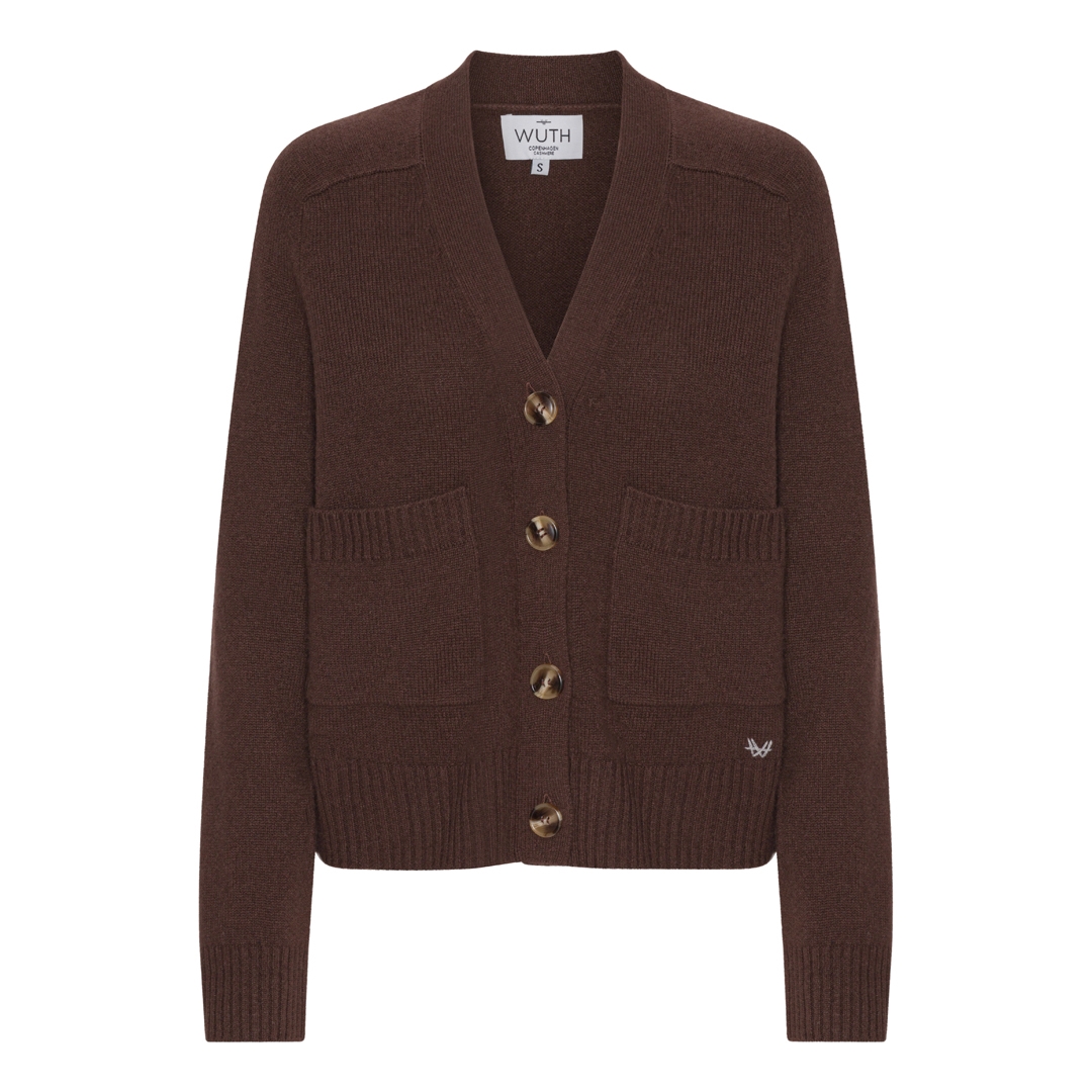 Klassisk Cardigan fra Wuth Copenhagen AW 2025. Cardiganen har ribkanter, manchetter ved ærmer og udskæring ved hals. Cardiganen lukkes med knapper fortil og har store forlommer.